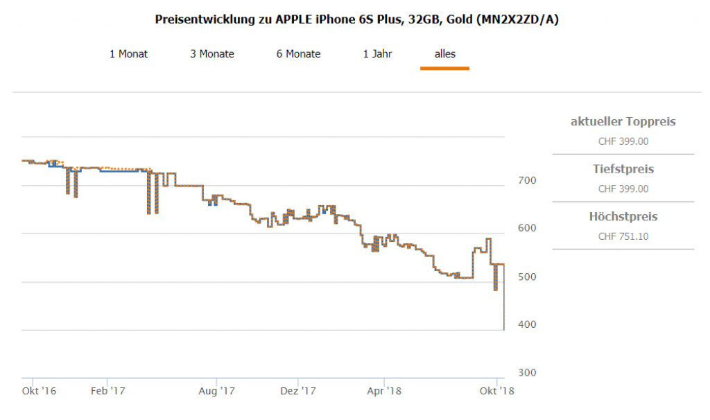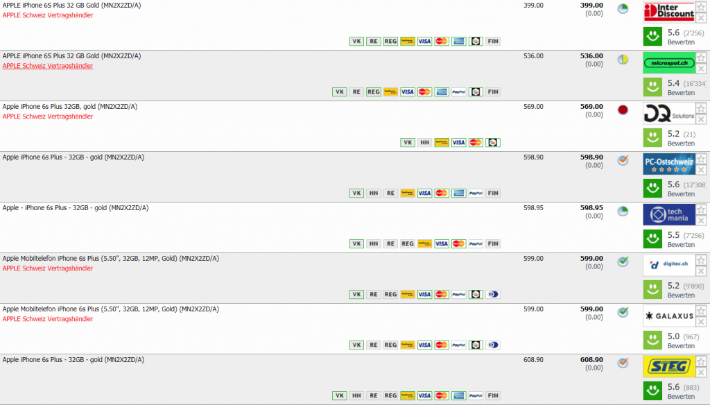 Interdiscount hat die Preise fürs iPhone 6S Plus angepasst. Verfügbar sind verschiedene Farben und verschiedene Grössen des internen Speichers. Die 32GB Version gibt’s z.B. für CHF 399.- mit Gutscheincode HFWID10 sogar für CHF 389.- Zweitbester Preis ist bei CHF 536.- Bestpreis war bei CHF 482.-