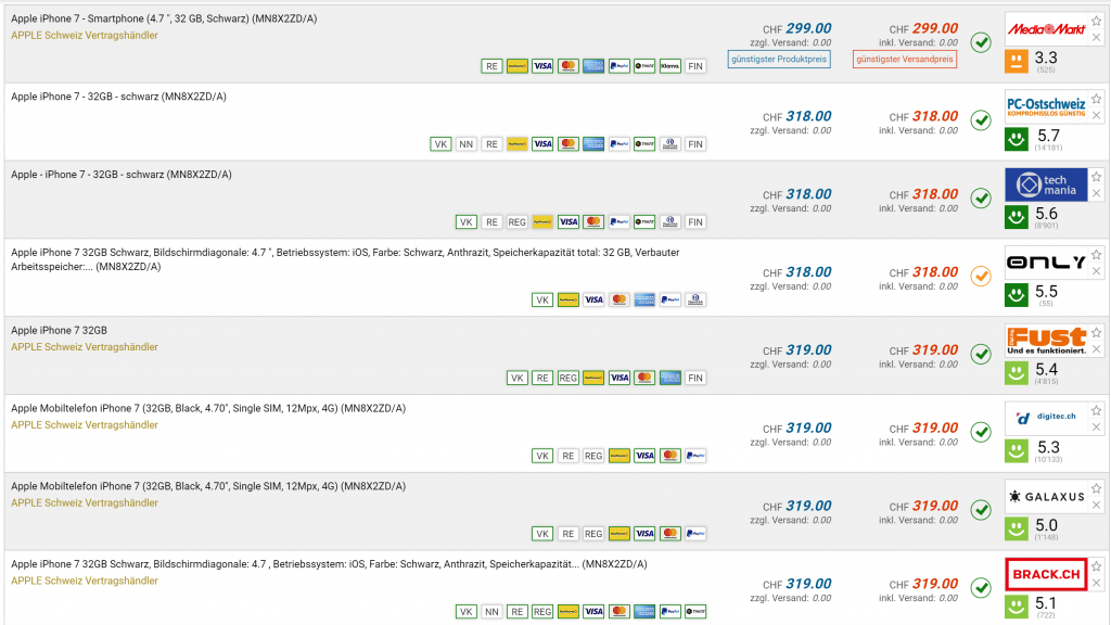 Mag mir mal jemand erklären, warum das iPhone 7 auch nach vier Jahren immer noch so beliebt ist? Ein iPhone 8 Plus mit reichlich Speicher für 300 CHF würd ich in Erwägung ziehen, aber ein iPhone 7 32GB?