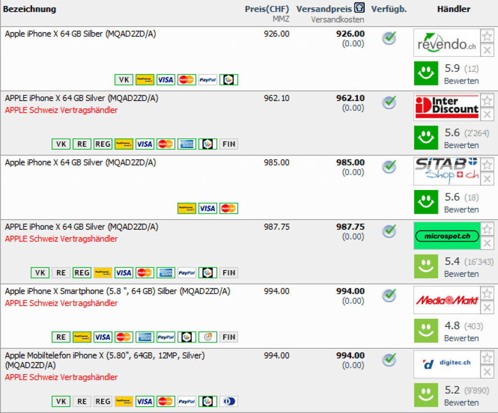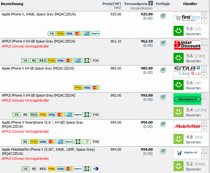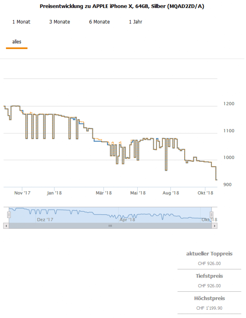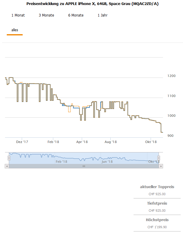 Gemäss toppreise gab es das Handy bislang nie günstiger als für 925.- CHF, was aktuell auch der zweitbeste Preis ist.