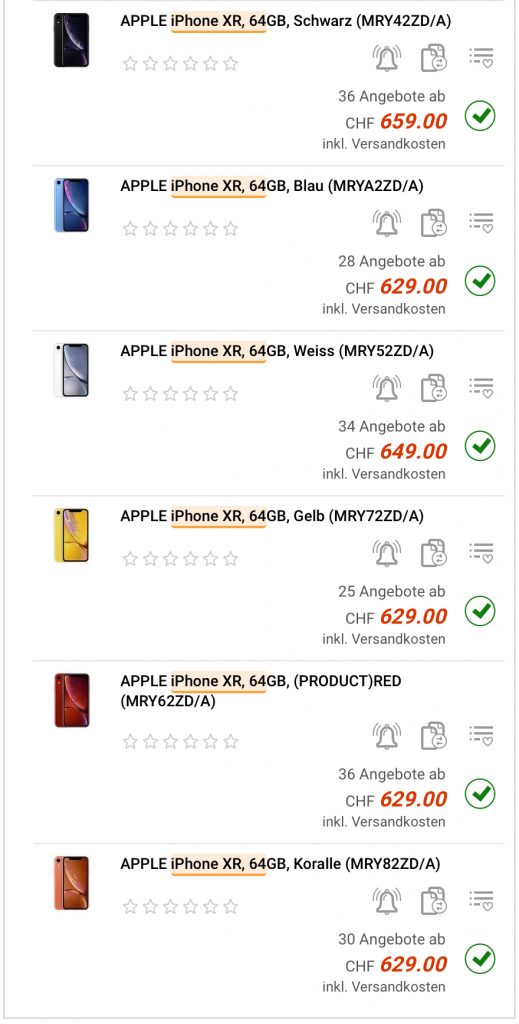 Bei amazon.de gibt es aktuell das Apple iPhone XR (64GB) in verschiedenen Farben für je 555.- EUR.