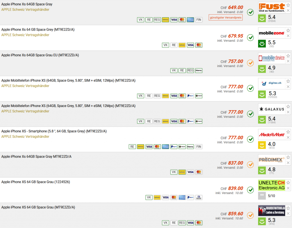 Zweitbester Preis gemäss toppreise bei 679.95 CHF von mobilezone.