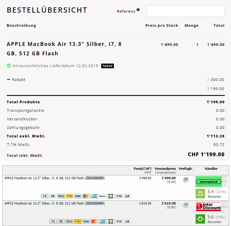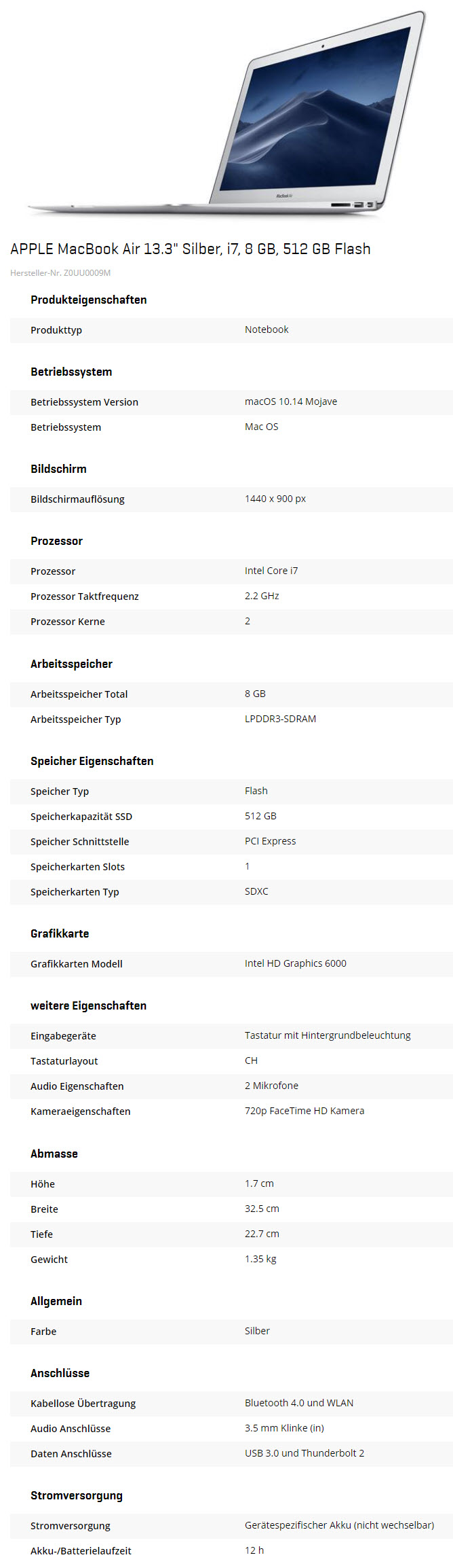 Apple hat im Oktober 2018 zwar die neue Version des MacBook Air vorgestellt aber nicht alle sind damit glücklich. Bei Micropsot gibt es bis zum 20.2.2019 das „alte“ MacBook Air mit voller Ausrüstung zum Preis von CHF 1199.- wenn man beim Checkout den CHF 300.- Rabattcode APFELKW72019 verwendet.