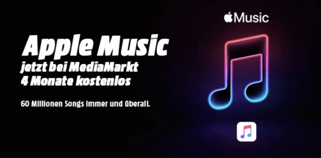 Bei Media Markt kann man auf der Homepage Apple Music kostenlos 4 Monate freischalten.