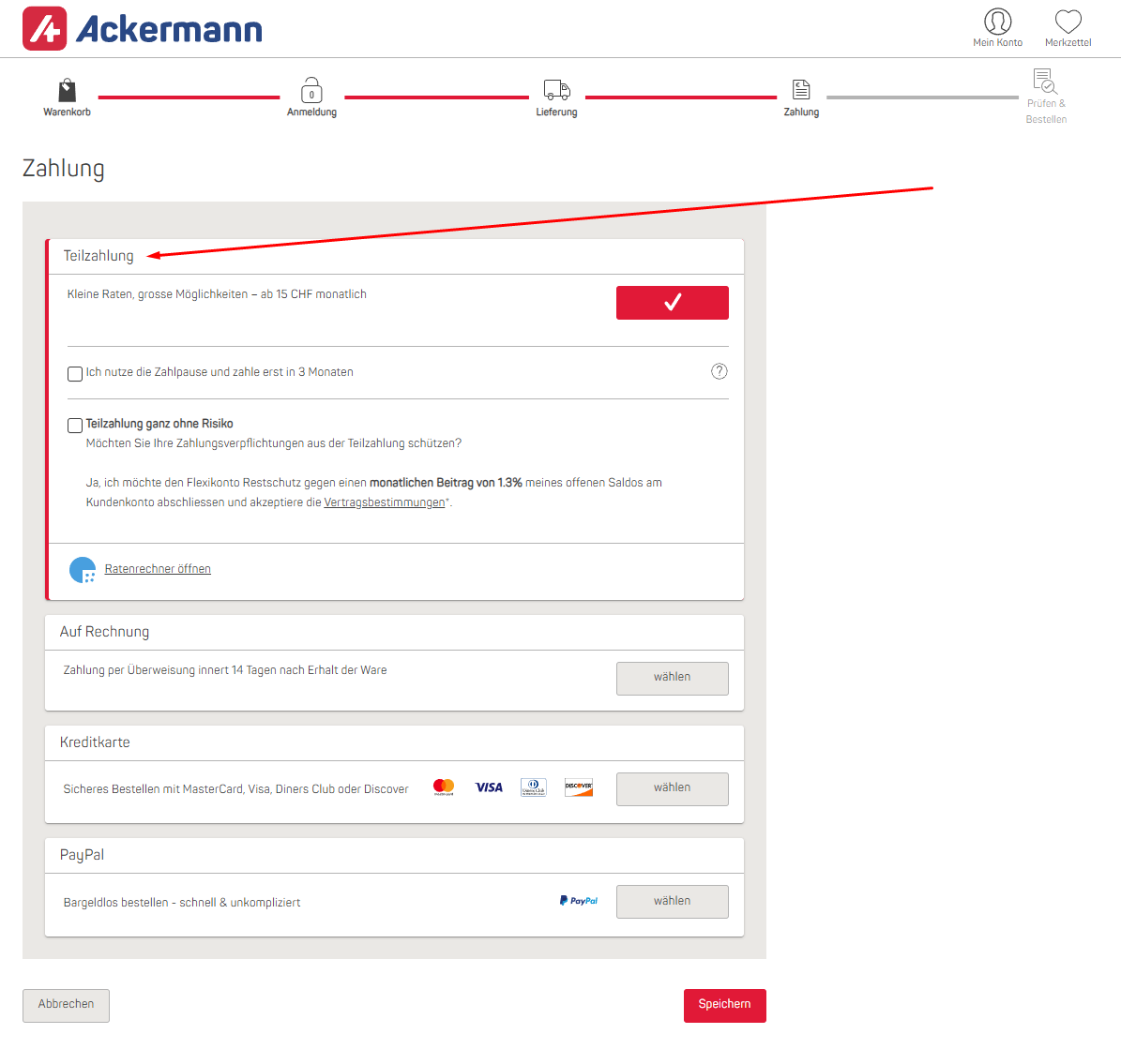 Wo steht das mit der Ratenzahlung? Bei mir werden im letzten Schritt genau 89 Franken angezeigt: