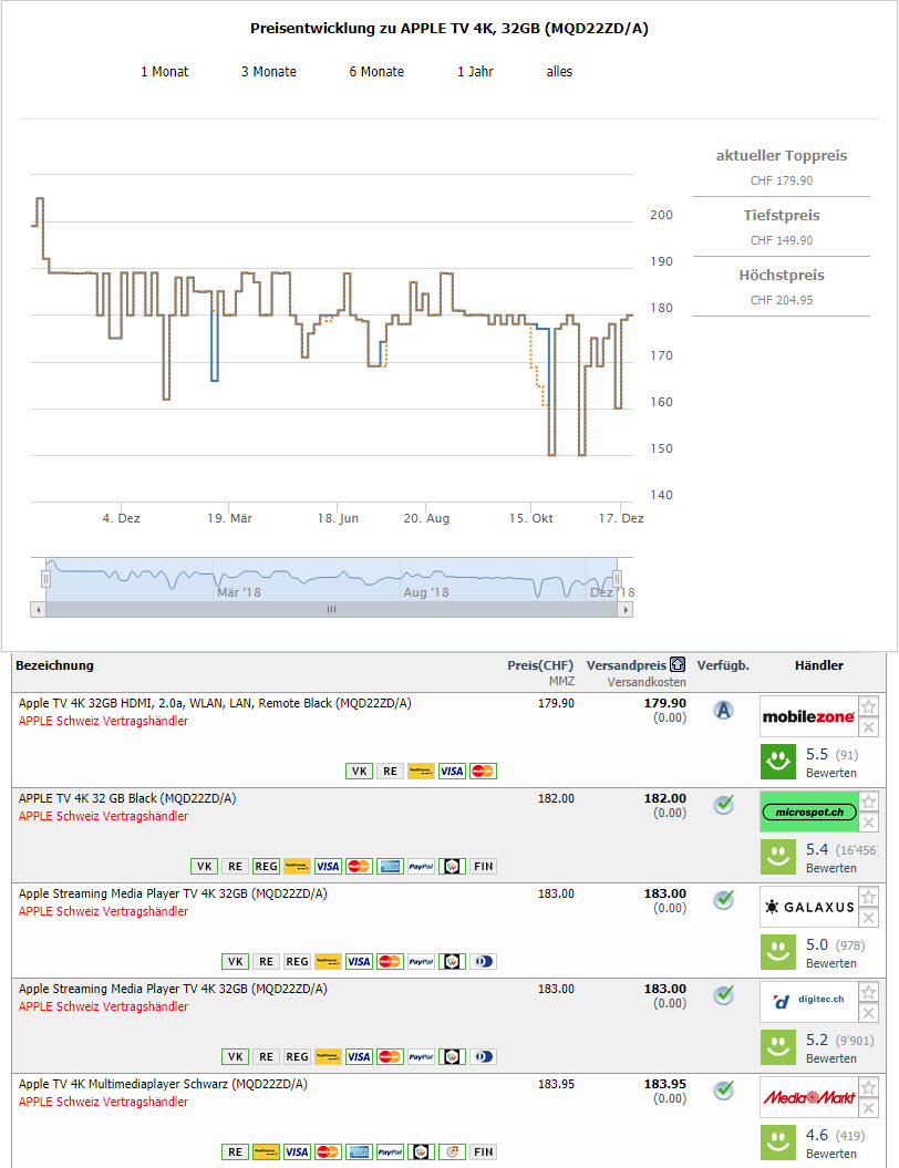 Der absolute Tiefstpreis lag im November mit dem FUST Gutschein mal für kurze Zeit bei CHF 129.90.
