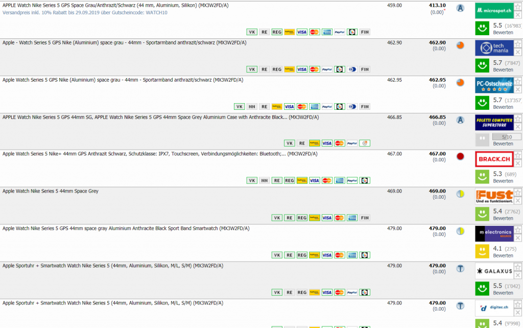Bei microspot gibt’s gerade die APPLE Watch Nike+ GPS (Series 5), 44mm Aluminiumgehäuse, Space Grau mit Nike Sportarmband, Anthrazit/Schwarz (MX3W2FD/A) mit dem Gutscheincode WATCH10 für CHF 413.10. Zweitbester Preis ist CHF 462.90 Bestpreis war bei CHF 449.-