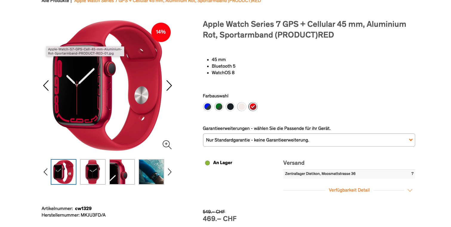 Zwei Apple Watch in einer Aktion bei DQ Solutions Apple Watch Series 7 GPS + Cellular 45 mm, Edelstahl Gold, Sportarmband Dunkelkirsch für CHF 599.- statt CHF 749.- Apple Watch Series 7 GPS + Cellular 45 mm, Aluminium Rot, Sportarmband (PRODUCT)RED für CHF 469.- statt CHF 549.-