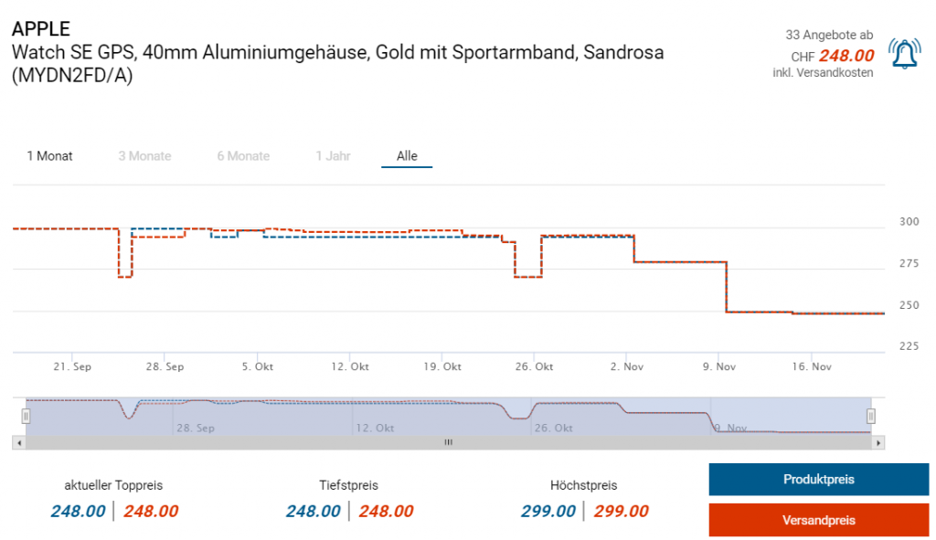 Die apple watch se 40mm gibts unbestritten zum topppreis, aber nicht zum bestprice;) dieser war am 11.11 bei microspot für 249 minus 20.-