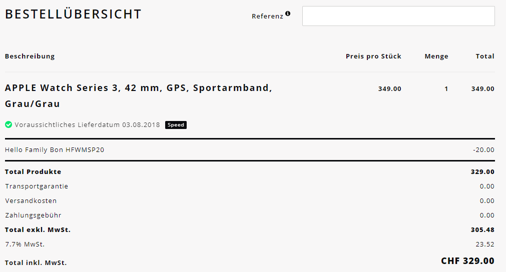 Normal kostet die Smartwatch CHF 349.-. Mit dem Hellofamily Gutschein „HFWMSP20“ gibts nochmals 20.- Rabatt.