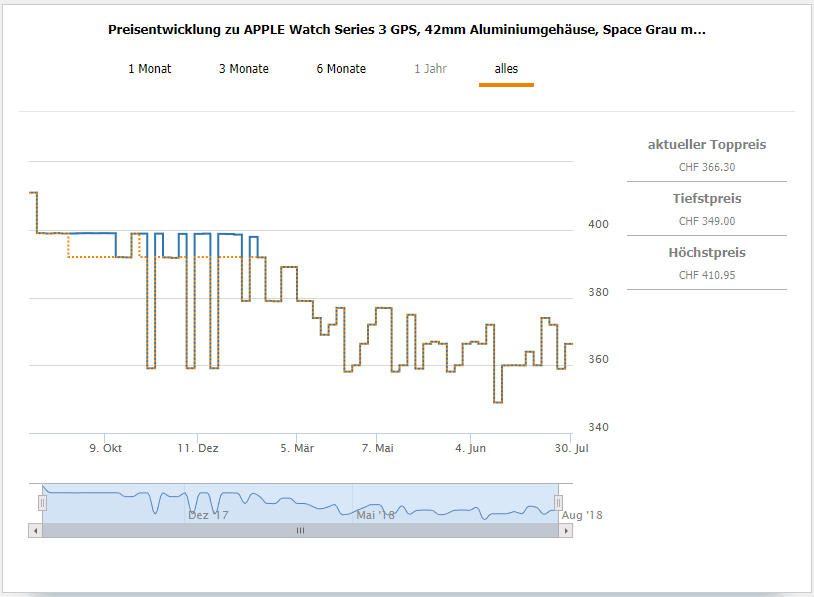 Tiefster Preis gemäss Toppreise war CHF 349.-, nun CHF 329.-