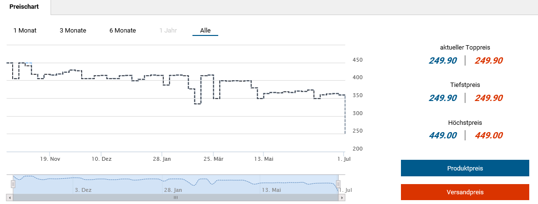 Zweitbester Preis über alle Farbvarianten aktuell bei 299.90 CHF.