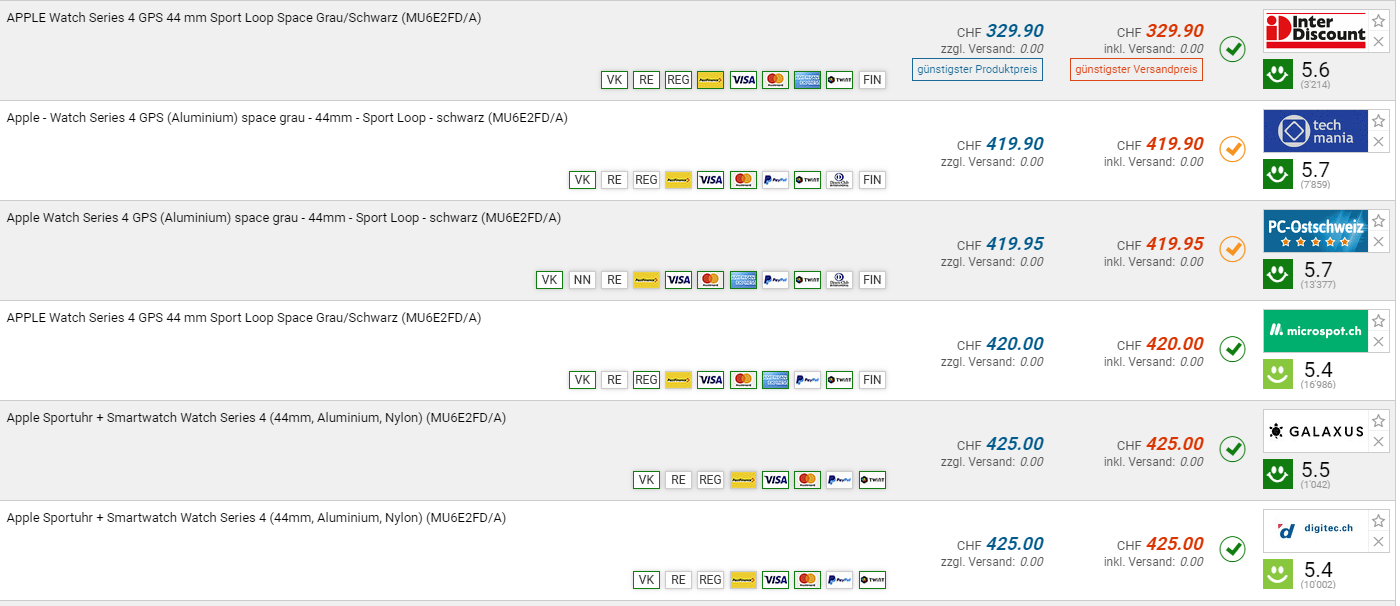 Bei Interdiscount gibt es momentan die APPLE Watch Series 4 zu dem neuen Bestpreis von CHF 329.90. Der vorherige Bestpreis war CHF 378.90 und der zweitbeste Preis ist CHF 419.90.