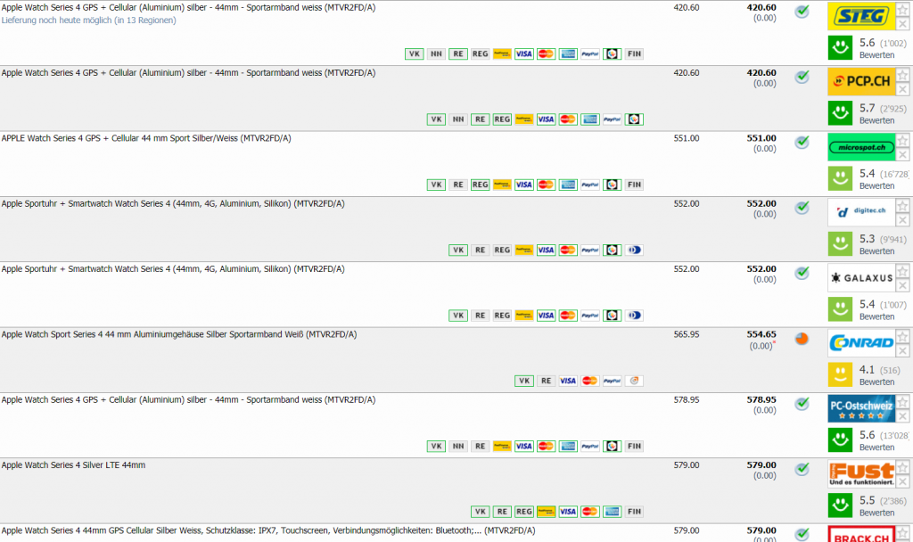 Bei Steg gibt’s gerade die APPLE Watch Series 4 GPS + Cellular, 44mm Aluminiumgehäuse, Silber mit Sportarmband in weiss für CHF 420.- und in sandrosa für CHF 396.20
