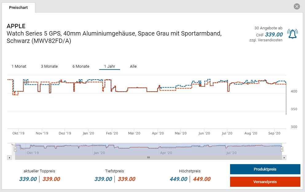 Laut Toppreise das günstigste Angebot seit einem Jahr. Letzter Bestpreis war CHF 395.- somit neuer Bestpreis.