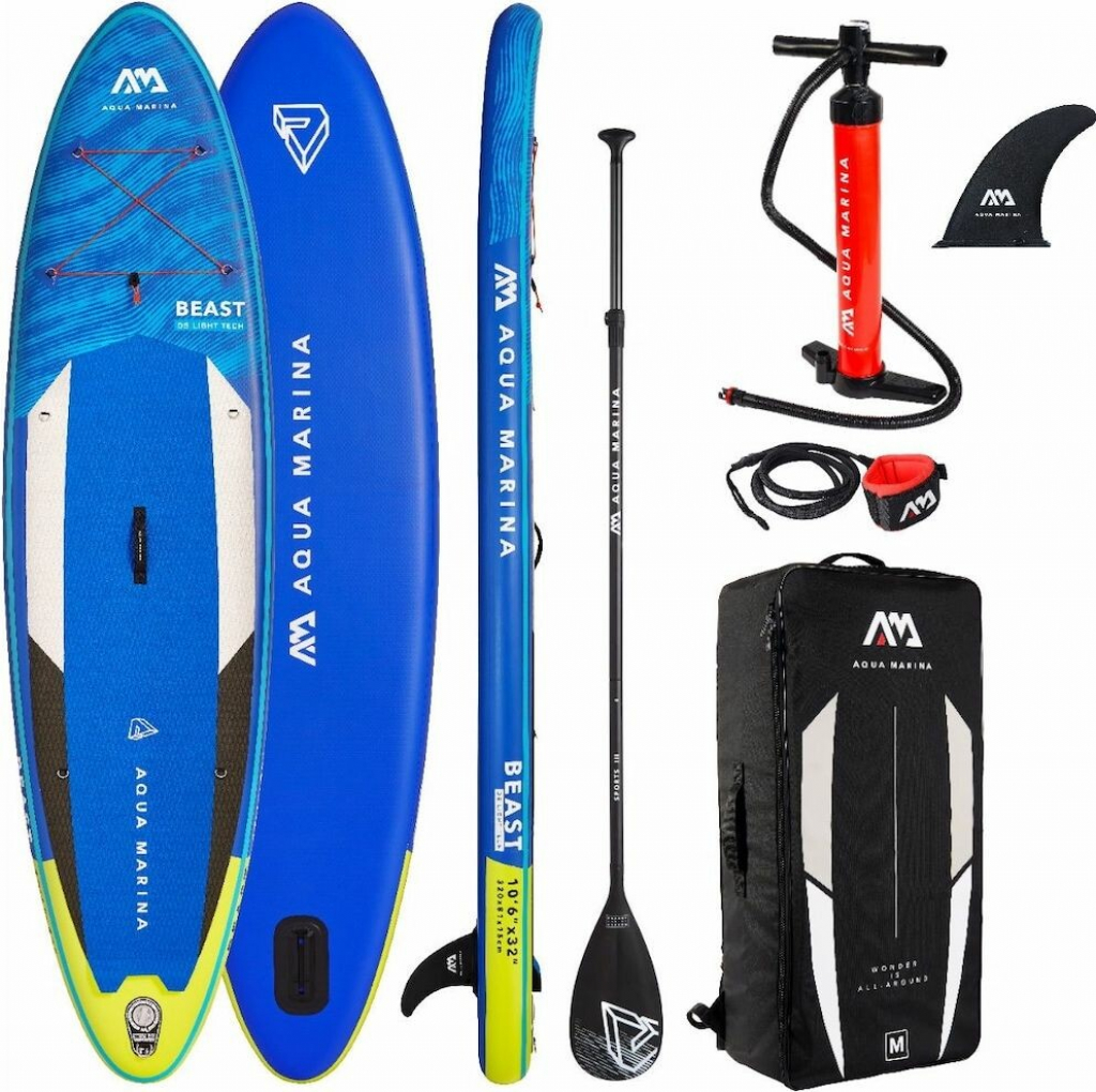 Im Set inklusive: Grössenverstellbares Aluminiumpaddel, Rucksack, Doppelhubpumpe, Sicherheitsleine