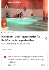 Der Deal scheint nicht so gut zu sein. Kauft euch lieber eines der 2 für 1 Bücher für CHF 35 mit 100 anderen Angeboten, da gibt es einen für Aqau Basilea inkl.