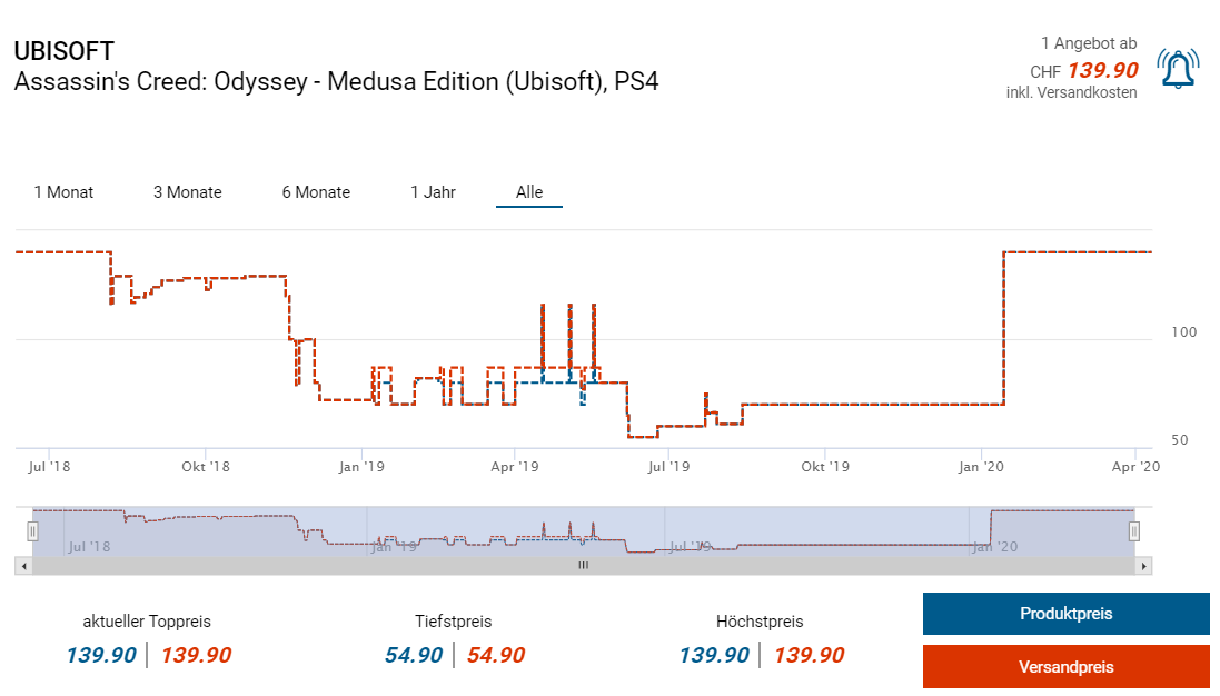 Bei amazon kriegt ihr derzeit die Assassins Creed Odyssey Medusa Collectors Edition für die PS4 für ca. 53 Franken, zweitbester Preis zurzeit (zumindest laut toppreise.ch) liegt bei ca. 140 Franken, ich erspare es euch somit einen Vergleichspreis zu setzen, da es diese Edition bereits einmal für 55 Franken in der Schweiz gab. Für alle die das Angebot verpasst haben können jetzt zuschlagen.