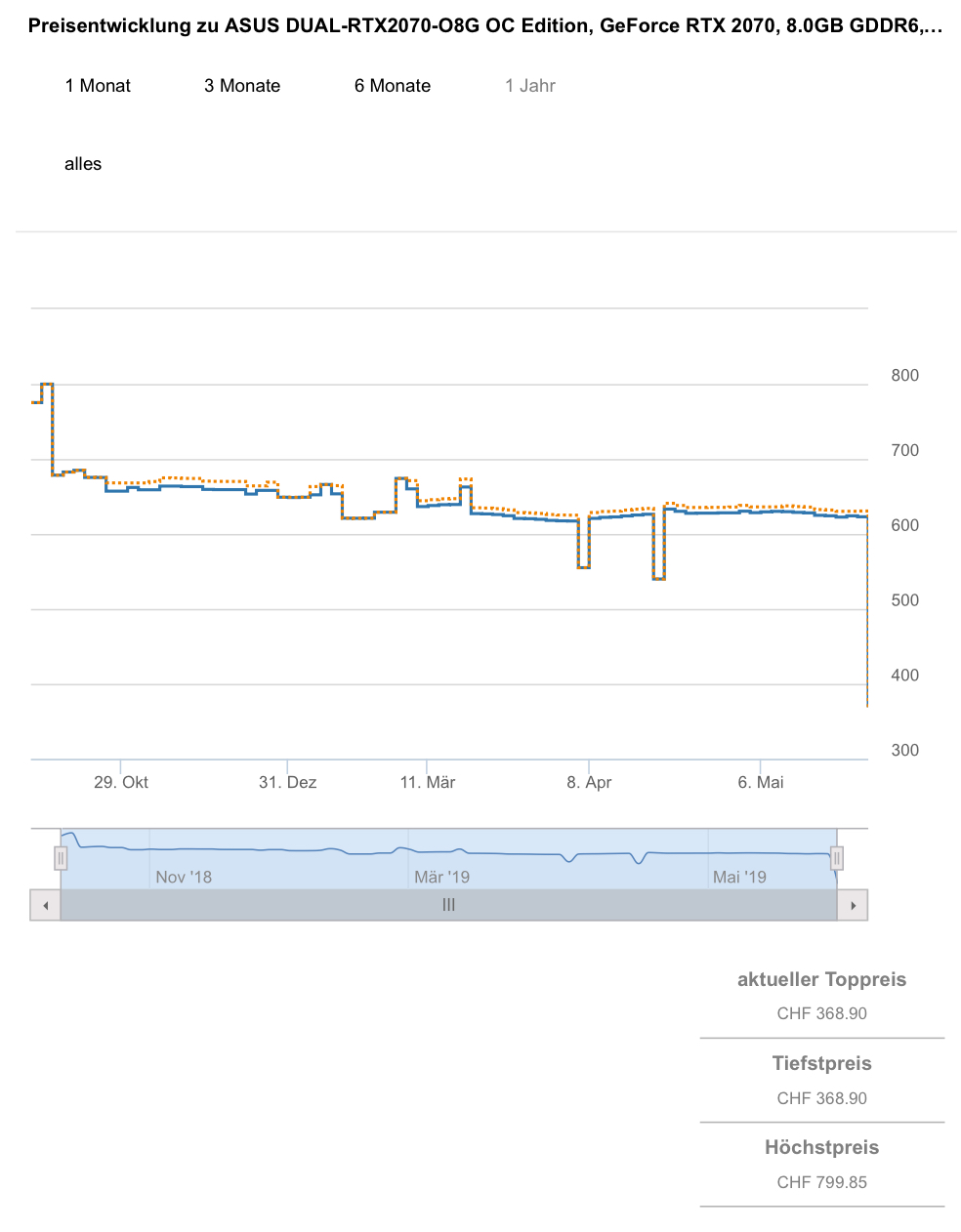 Also bei mir zeigt es nur 828.05CHF an, wurde also wahrscheinlich schon gefixt. Bei der 2070 ist der Preis aber noch immer aktuell (obwohl z.B. bei ACS geschrieben wird, dass die Preise stündlich aktualisiert werden). Ich bin mal gespannt, ob die Bestellung stoniert wird - ist 40% Rabatt schon ein offensichtlicher Preisfehler?