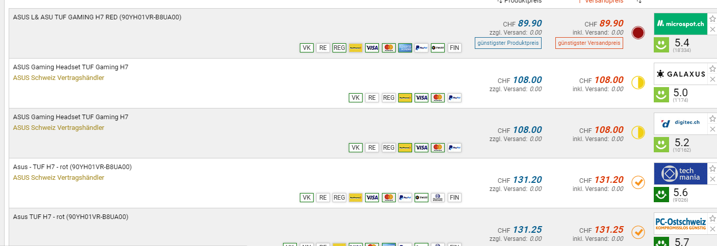 Bei Microspot gibt es das ASUS Gaming Headset TUF H7 für den neuen Bestpreis von CHF 89.-. Der vorherige Bestpreis war CHF 93.-. Der zweitbeste Preis beträgt CHF 108.-.