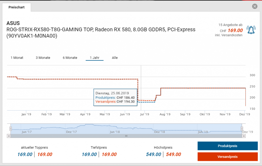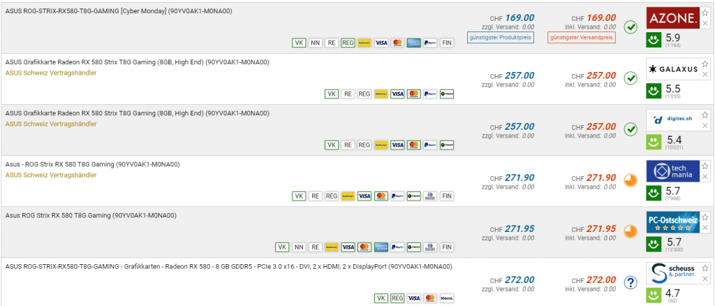 Bei Azone gibt es die ASUS Radeon RX 580 Grafikkarte für den neuen Bestpreis von CHF 169.-. Der vorherige Bestpreis war CHF 194.30. Der zweitbeste Preis beträgt CHF 257.-.