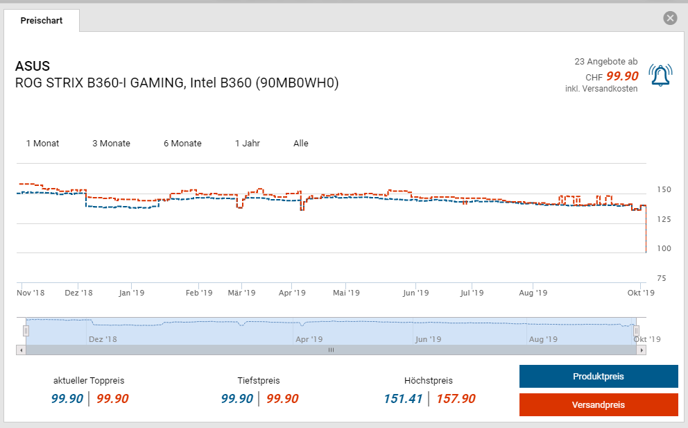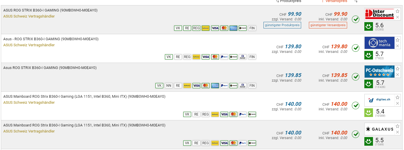 Bei Interdiscount gibt es das ASUS ROG STRIX B360-I GAMING Mainboard für den neuen Bestpreis con CHF 99.90. Der vorherige Bestpreis war CHF 135.90. Der zweitbeste Preis beträgt CHF 139.80.
