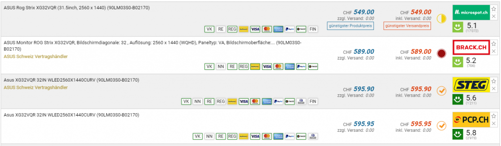 Bei digitec gibt es den ASUS ROG Strix XG32VQR Monitor für den neuen Bestpreis von CHF 459.-. Der vorherige Bestpreis war CHF 479.90. Der zweitbeste Preis beträgt CHF 549.-.