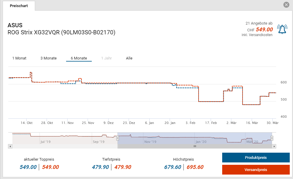 Bei digitec gibt es den ASUS ROG Strix XG32VQR Monitor für den neuen Bestpreis von CHF 459.-. Der vorherige Bestpreis war CHF 479.90. Der zweitbeste Preis beträgt CHF 549.-.