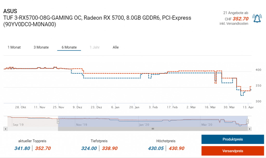 Bei amazon.es gibts gerade diese Grafikkarte von AMD zum guten Kurs. Laut toppreise lag der Bestpreis vor kurzem bei ca. 339 Franken, hier wird dieser nochmals um 18 Franken unterboten.