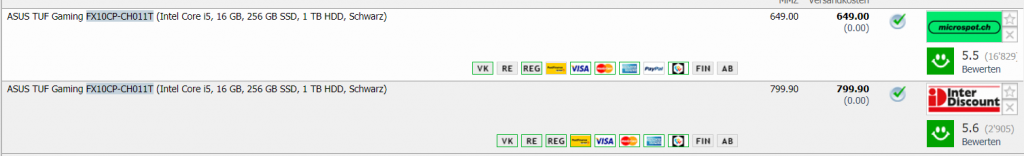 Bei microspot gibt’s heute im Tagesdeal den Einsteiger-Gaming-PC ASUS TUF Gaming FX10CP-CH011T mit i5 Prozessor, Nvidia GeForce GTX 1050, 16GB RAM, 256GB SSD und 1TB HDD für CHF 649.- Leider gibt’s auf toppreise keinen Preisverlauf dazu.