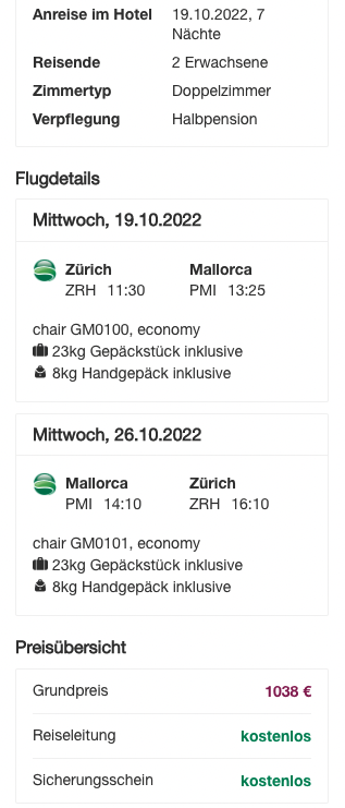 - Flug von Zürich nach Palma mit 23kg Gepäck