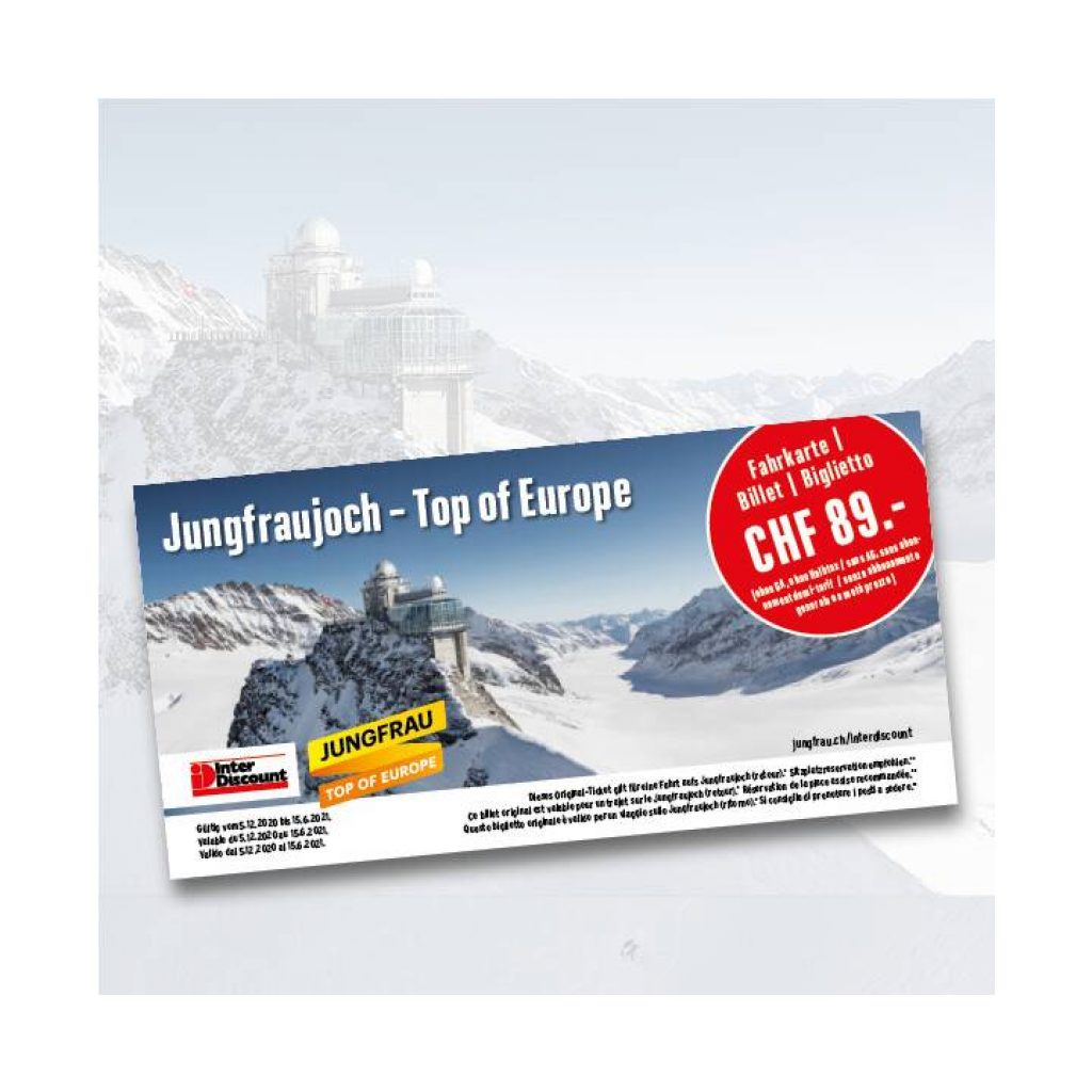 - Einlösbar bei den Jungfraubahnen ab 5.12.2020 bis 15.6.2021. Das Ticket berechtigt zur direkten Fahrt ab Grindelwald Terminal oder Lauterbrunnen zum Jungfraujoch – Top of Europe (retour). Mit dem Ticket können Sie im genannten Zeitraum einmalig auf das Jungfraujoch – Top of Europe reisen.