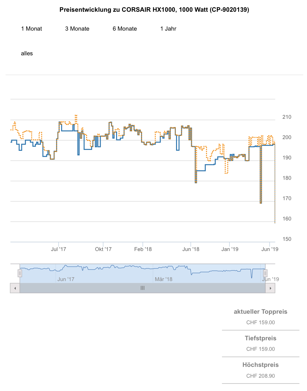 CORSAIR HX1000 für 159.- CHF, zweitbester Preis 198.90 CHF