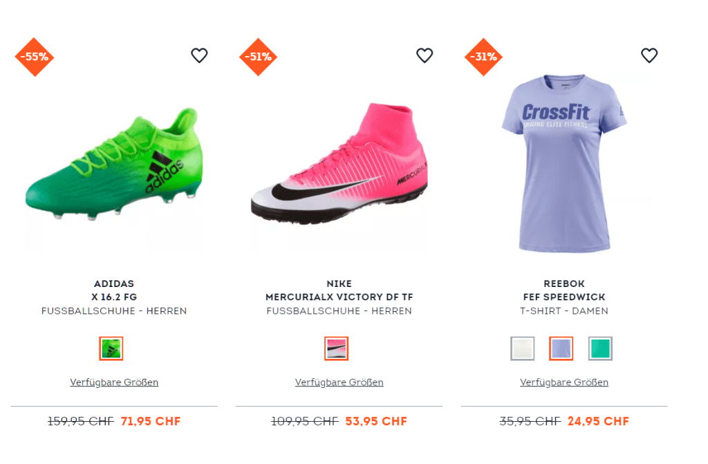 Auch bei SportScheck beginnt nun der SALE: 17’000 (!) Artikel sind mit bis zu 50% reduziert. Die meisten Reduktionen sind jedoch momentan um die 30%. Die Auswahl ist sehr gross: Skijacken, Bikinis, Fussballschuhe, T-Shirts, ..
