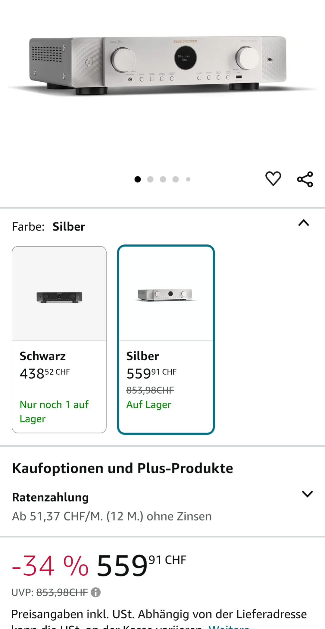 • Für Lieferungen in die Schweiz wird der Preis erst bei Angabe einer Schweizer Lieferadresse richtig angezeigt (Abzug der Mehrwertsteuer, zuzüglich Versandkosten) resp. beim Checkout an der Kasse (Amazon Frankreich, Italien, Spanien und Grossbritannien). Wir verwenden grundsätzlich den Interbanken-Kurs für die Umrechnung in CHF.
