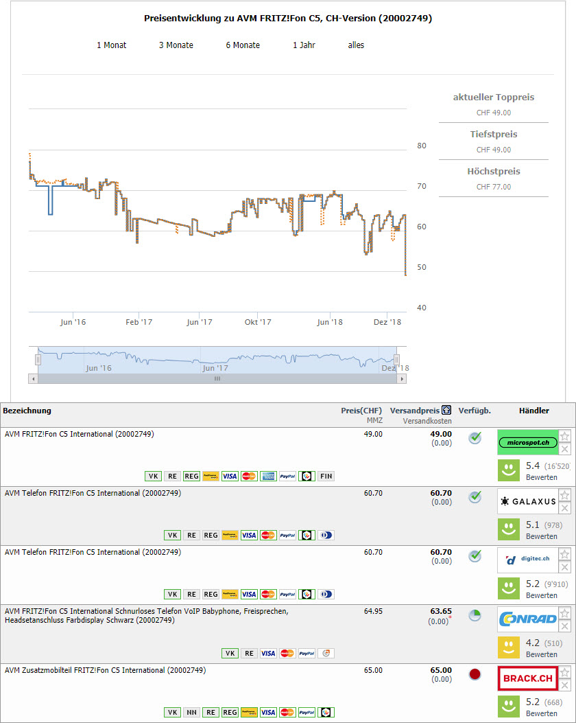 Momentan gibt es bei microspot total 100 Stück des AVM FRITZ!Fon C5 International zum Bestpreis von CHF 49.-. Das Telefon ist die ideale Ergänzung zur FRITZ!Box (gab es ja z.B. kürzlich zu einen guten Preis bei Mediamarkt).