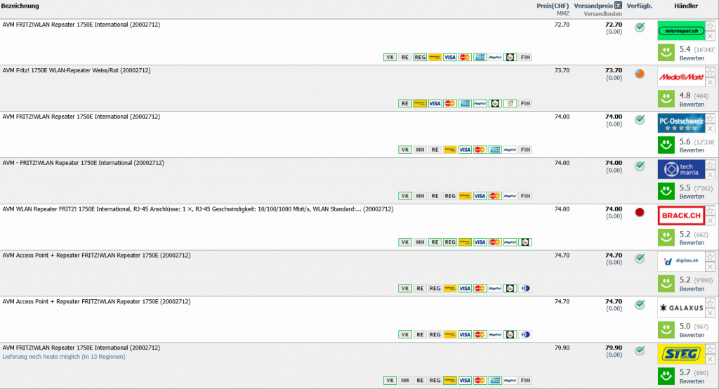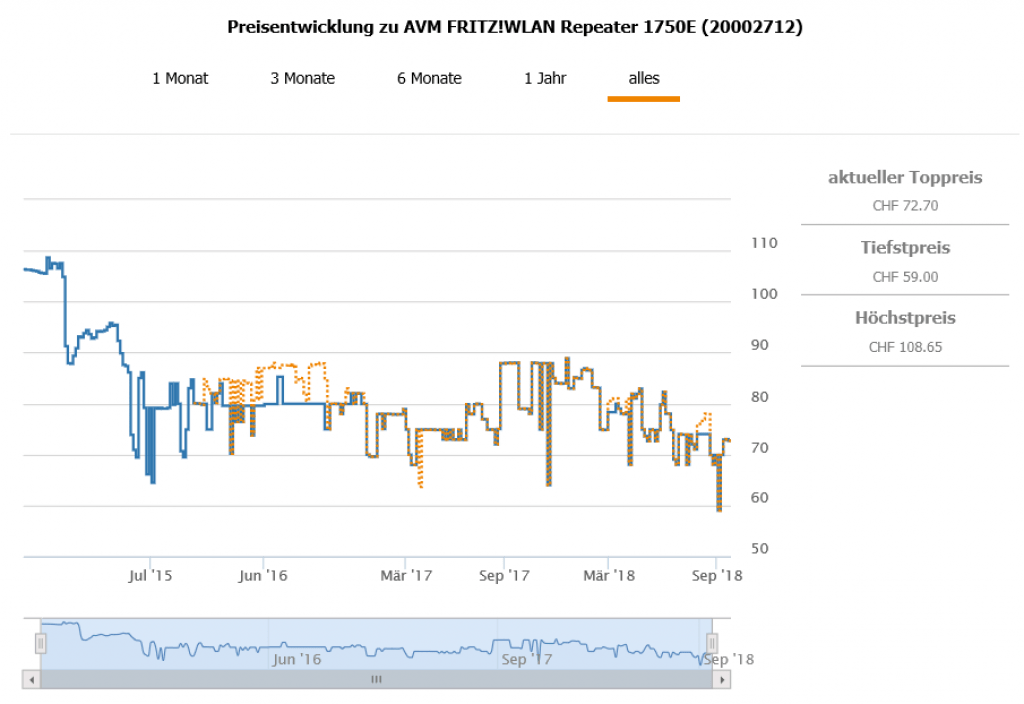Gemäss toppreise gab es den Repeater bislang nie günstiger als für 59.- CHF, der zweitbeste Preis liegt aktuell bei 72.70 CHF.