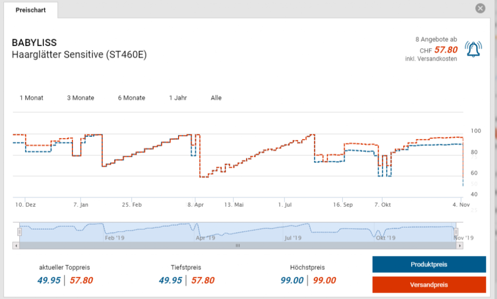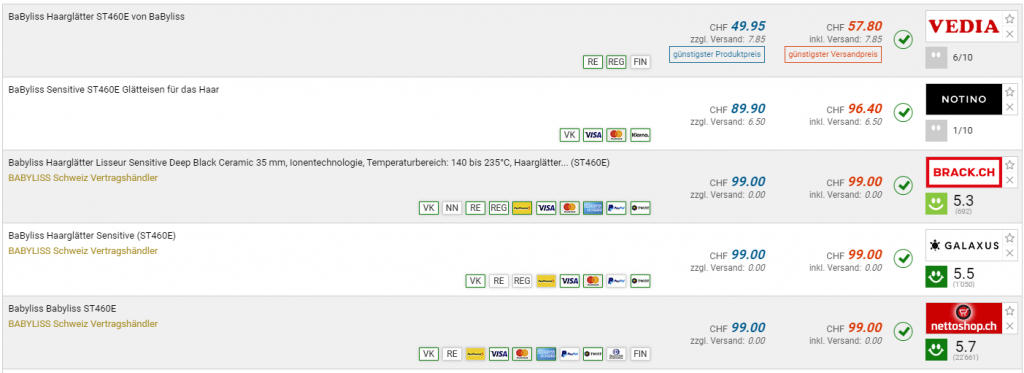 Bei Vedia gibt es den BABYLISS Haarglätter Sensitive für den neuen Bestpreis von CHF 57.80. Der vorherige Bestpreis war CHF 59.05. Der zweitbeste Preis beträgt CHF 96.40.