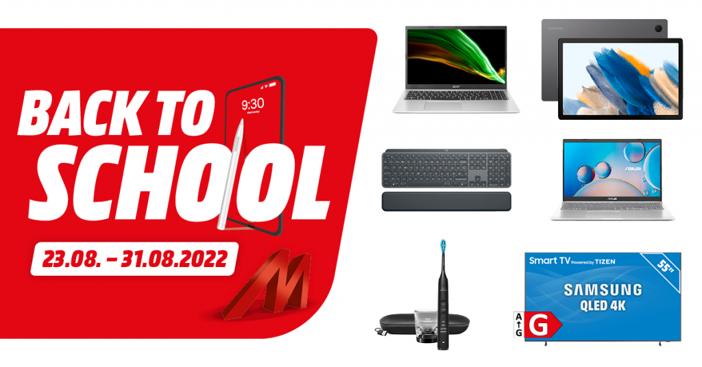 Bei MediaMarkt startet heute die Back To School Aktion! Bis zum 31.08. profitiert ihr von diversen attraktiven Angeboten im Bereich Computer & Büro, Beauty & Gesundheit, Home Entertainment und weitere.