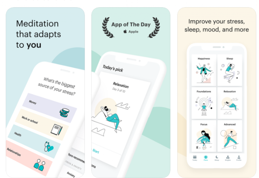 - Personalized guided meditations tailored to your mood, goals, experience, and more