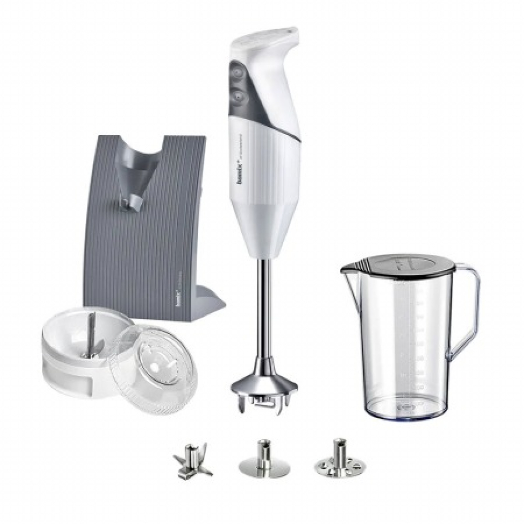 1x SwissLine 200 W (Zubehör: Multimesser, Schlagscheibe, Quirl, Stativ SwissLine grau, Krug 1000 ml mit Deckel schwarz, Processor weiss)