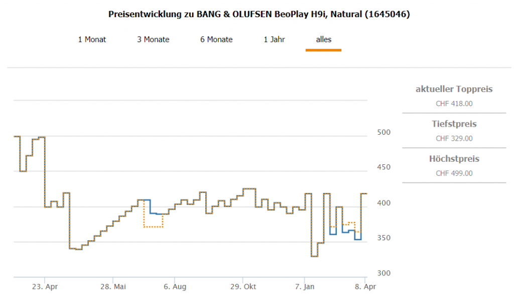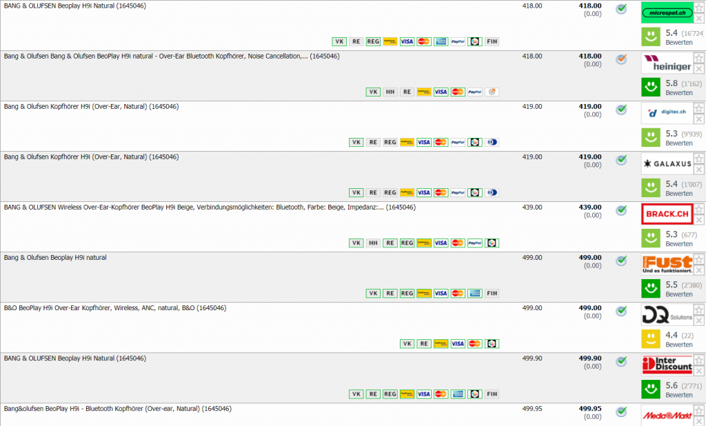 Bei Amazon gibt’s heute als Tagesangebot den BANG & OLUFSEN BeoPlay H9i, Natural für umgerechnet CHF 277.- inkl. Verzollung und Versand in die Schweiz. In der Schweiz ist der Kopfhörer deutlich teurer, momentan zweitbester Preis beträgt CHF 418.- Bestpreis war bei CHF 329.-