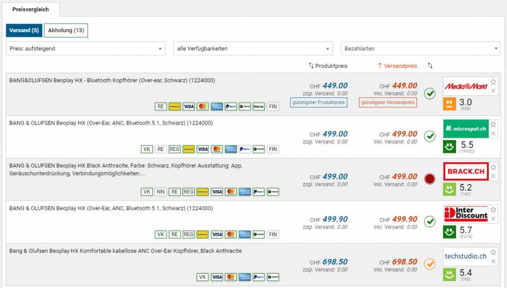 Bei MediaMarkt gibts derzeit den Overear-Kopfhörer B&O Beoplay HX zum neuen Bestpreis von 449 Franken. Laut toppreise liegt der Vergleichspreis sonst bei 499 Franken. Dabei ist es schwierig, den Kopfhörer richtig einzuordnen. Toppreise und Brack sagen, dass es ein On-Ear-Kopfhörer ist. MediaMarkt hingegen wirbt mit Overear und im Promo-Video von B&O wirkt es auch so. Ich würde mich also eher auf Letzteres verlassen.