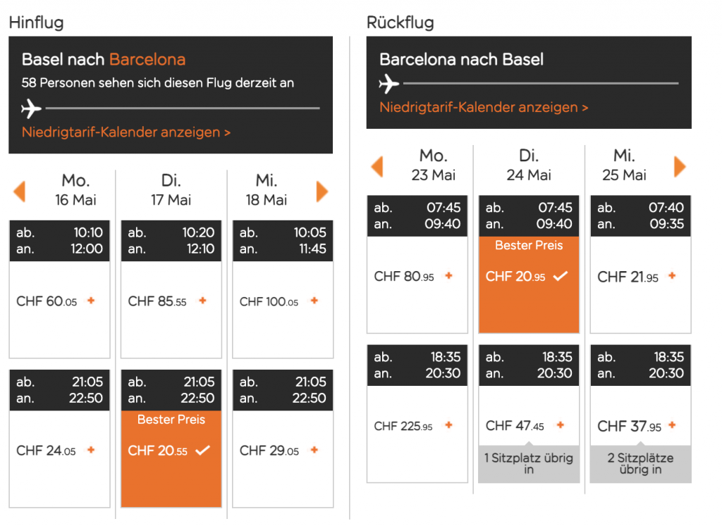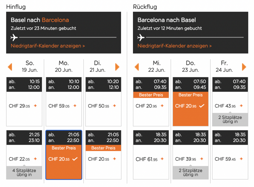 Bei Easyjet findet man derzeit wieder einige günstige Flüge ab Basel. So fliegt man bereits für CHF 41.50 nach Barcelona und zurück.
