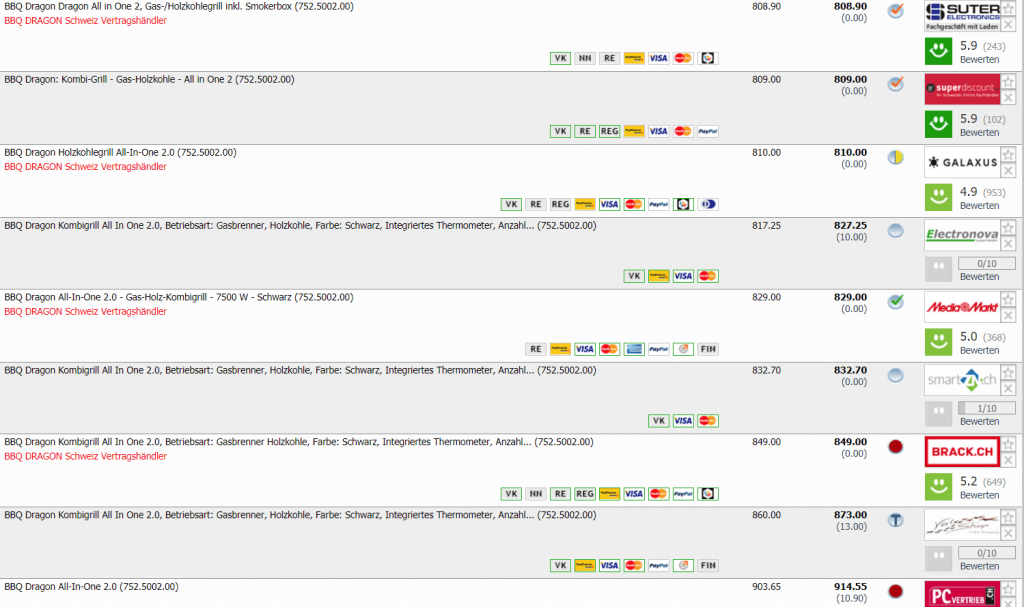 Preislich natürlich auch momentan sehr attraktiv für CHF 629.- bei MediaMarkt erhältlich. Der zweitbeste Preis in der Schweiz liegt bei CHF 808.90. Günstiger als für CHF 800.- gab’s den Kombigrill noch nie. Der MediaMarkt Deal gilt nur bis Morgen um 09.00 Uhr.