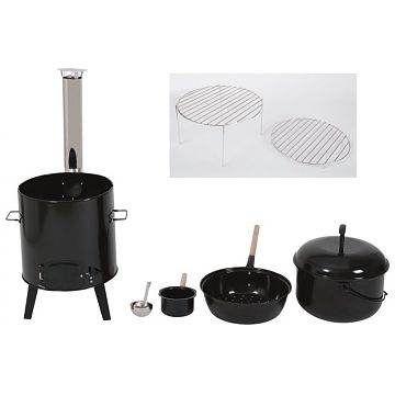 Der hochwertige Erlebnis-Ofen vom Typ BBQ DRAGON macht seinem Namen alle Ehre und bietet Ihnen eine Vielzahl an Möglichkeiten, kulinarische Spezialitäten im Freien zuzubereiten. Der Grill eignet sich hervorragend zum Braten, Grillieren und Maroni rösten sowie zur Zubereitung von schmackhaften Fondues und leckeren Suppen. Im Umfang sind nicht nur eine Maronipfanne und ein Kochtopf, sondern auch zwei verchromte Grillroste aus Stahl und ein praktischer Aschenbehälter enthalten.