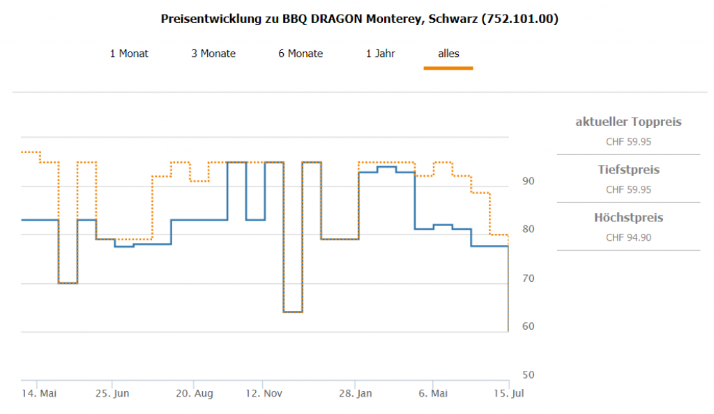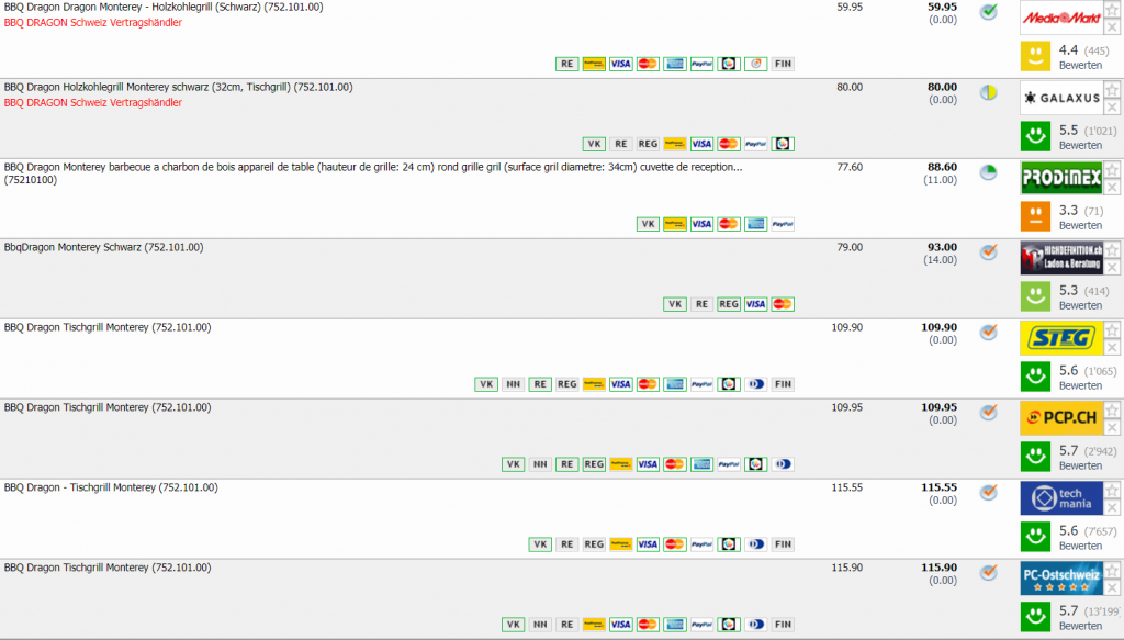 Neuer Bestpreis für den BBQ DRAGON Dragon Monterey - Holzkohlegrill bei MediaMarkt derzeit für CHF 59.90. Bestpreis bisher bei CHF 64.- Zweitbester Preis im Moment beträgt CHF 80.-