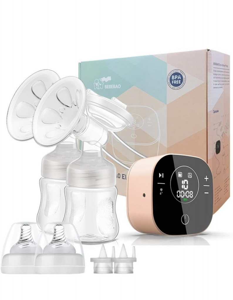 BEBEBAO Elektrische Doppelmilchpumpe, Stillpumpe mit 2 Modi und 10 Stufen, ultra-leise wiederaufladbare Milchpumpe für unterwegs und zu Hause