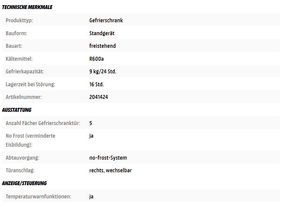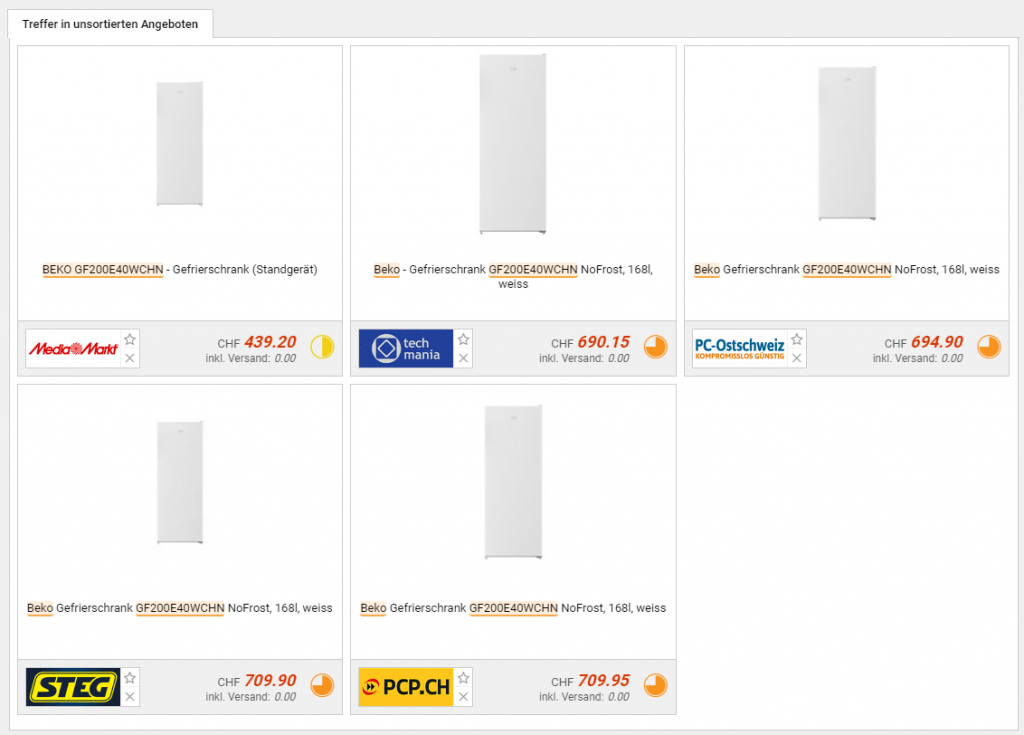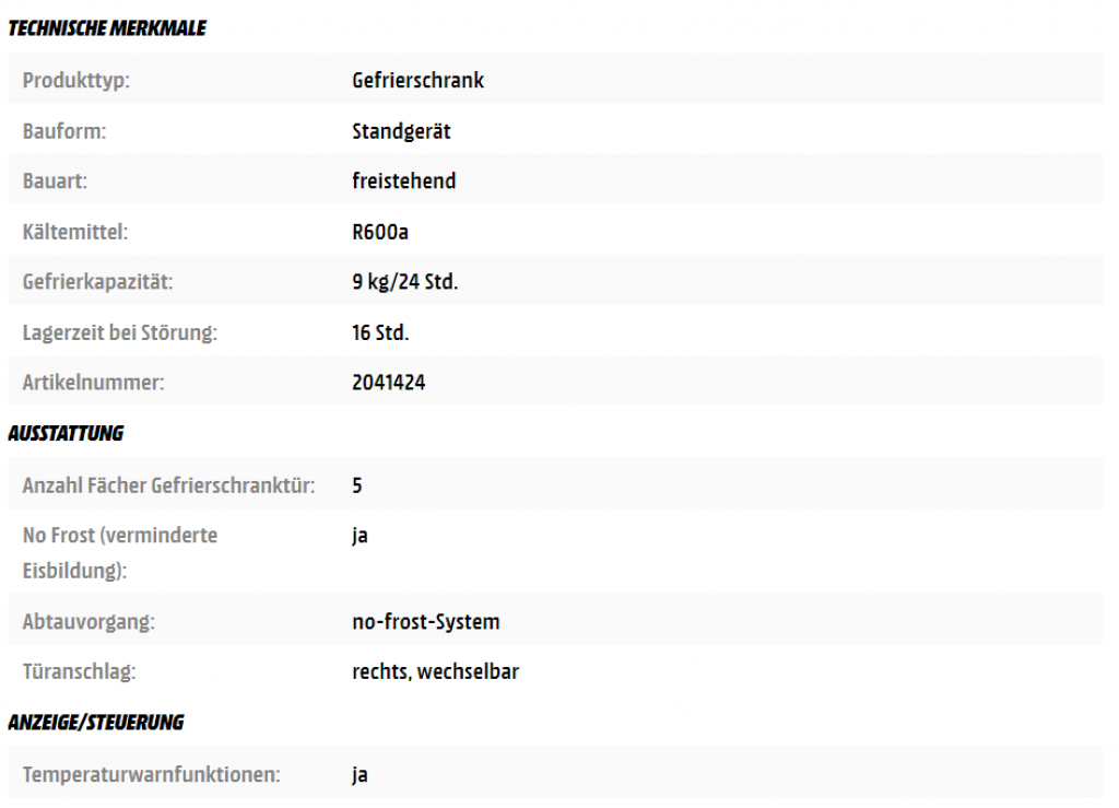 Bei Mediamarkt gibts derzeit den Gefrierschrank GF200E40WCHN von Beko zum Aktionspreis von knapp 440 Franken. Als Vergleichspreis gibts die „Aktion“ von Fust, die in den Preis-Hits beworben wird.