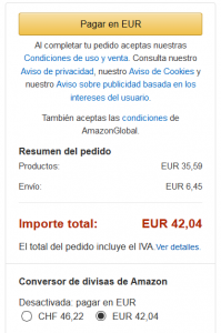 • Für Lieferungen in die Schweiz wird der Preis erst bei Angabe einer Schweizer Lieferadresse richtig angezeigt (Abzug der Mehrwertsteuer, zuzüglich Versandkosten) resp. beim Checkout an der Kasse (Amazon Frankreich, Italien, Spanien und Grossbritannien). Wir verwenden grundsätzlich den Interbanken-Kurs für die Umrechnung in CHF.