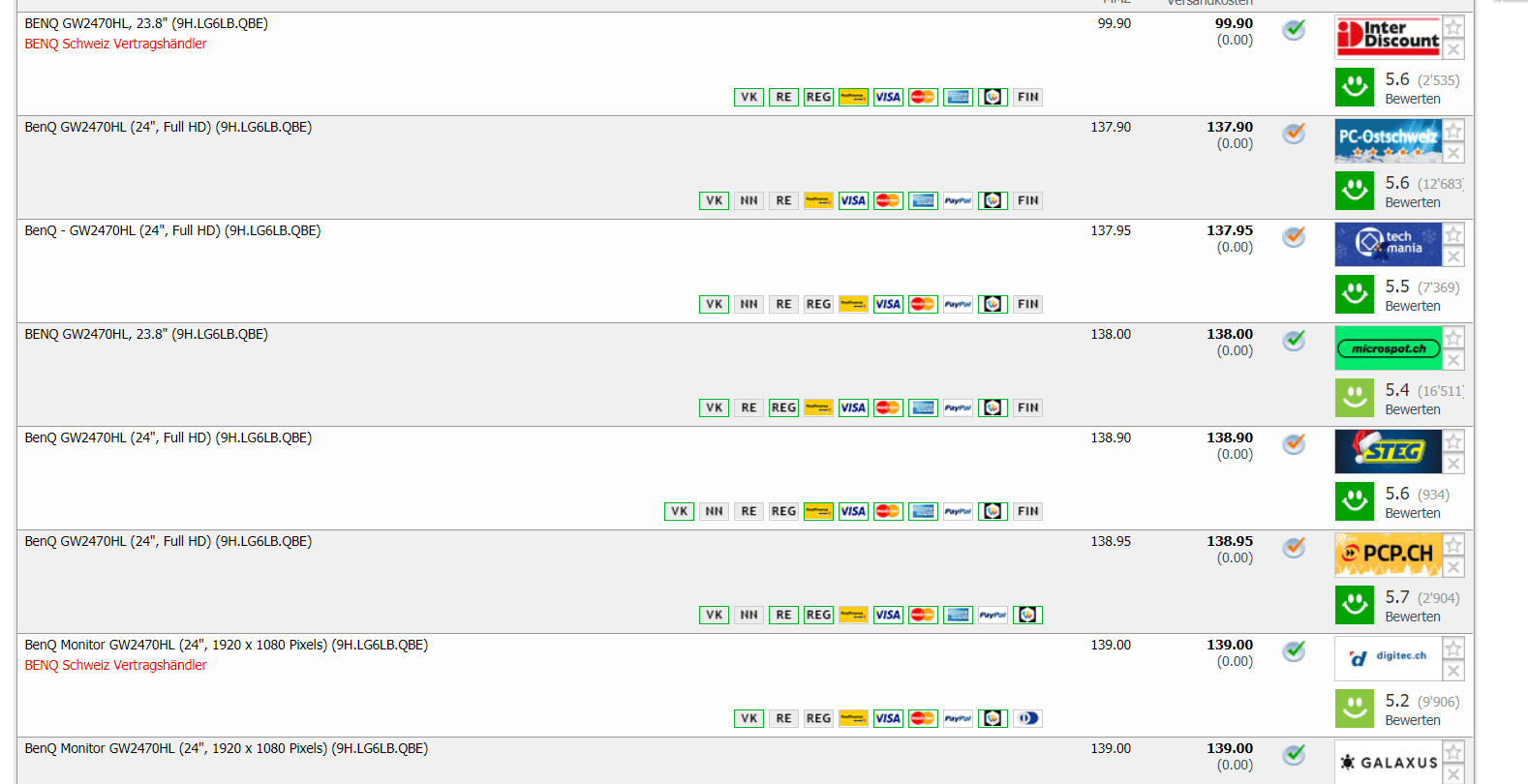 Wieder mal ein anständiger 24“ Monitor für unter 100 Franken bei Interdiscount, der BENQ GW2470HL. Zweitbester Preis in der Schweiz ist bei CHF 137.90, den Monitor gab’s auch schon für CHF 99.90.-